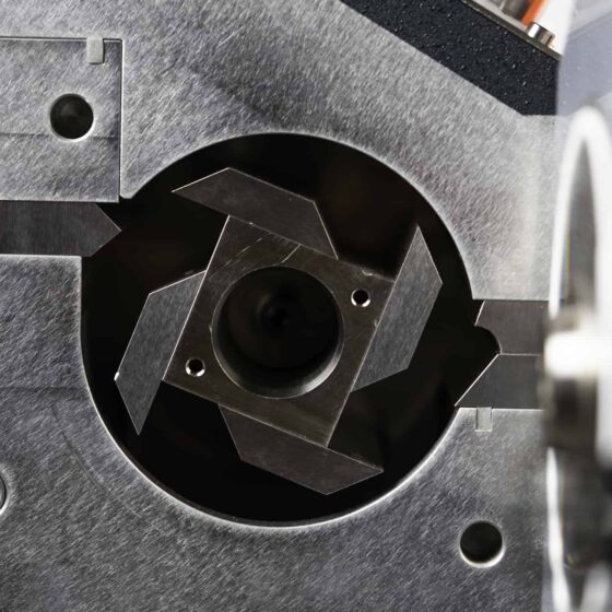 The SAMS.15 comes equipped with 4 rotating sharpened blades and 3 stationary blades which results in 12 cuts per rotation allowing facilities to process 1-3lbs of material per minute. These blades can be moved and repositioned to achieve different sizes of material.